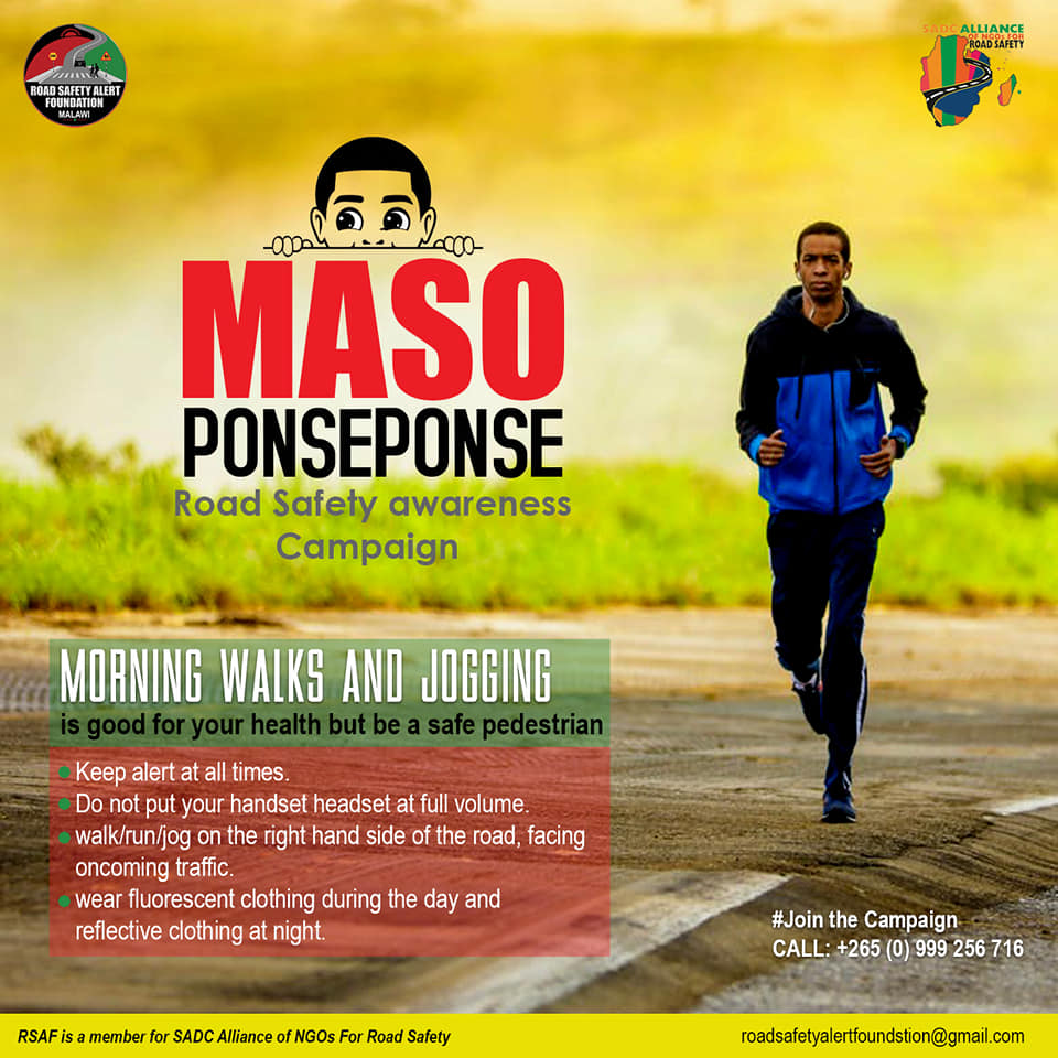 Maso Ponseponse or “Eyes Everywhere” in English is a sensitization initiative in Malawi, encouraging individuals to be responsible road users and report road crashes. It encourages them to observe road signs, regulations, distractions, and encourage others to support government efforts.